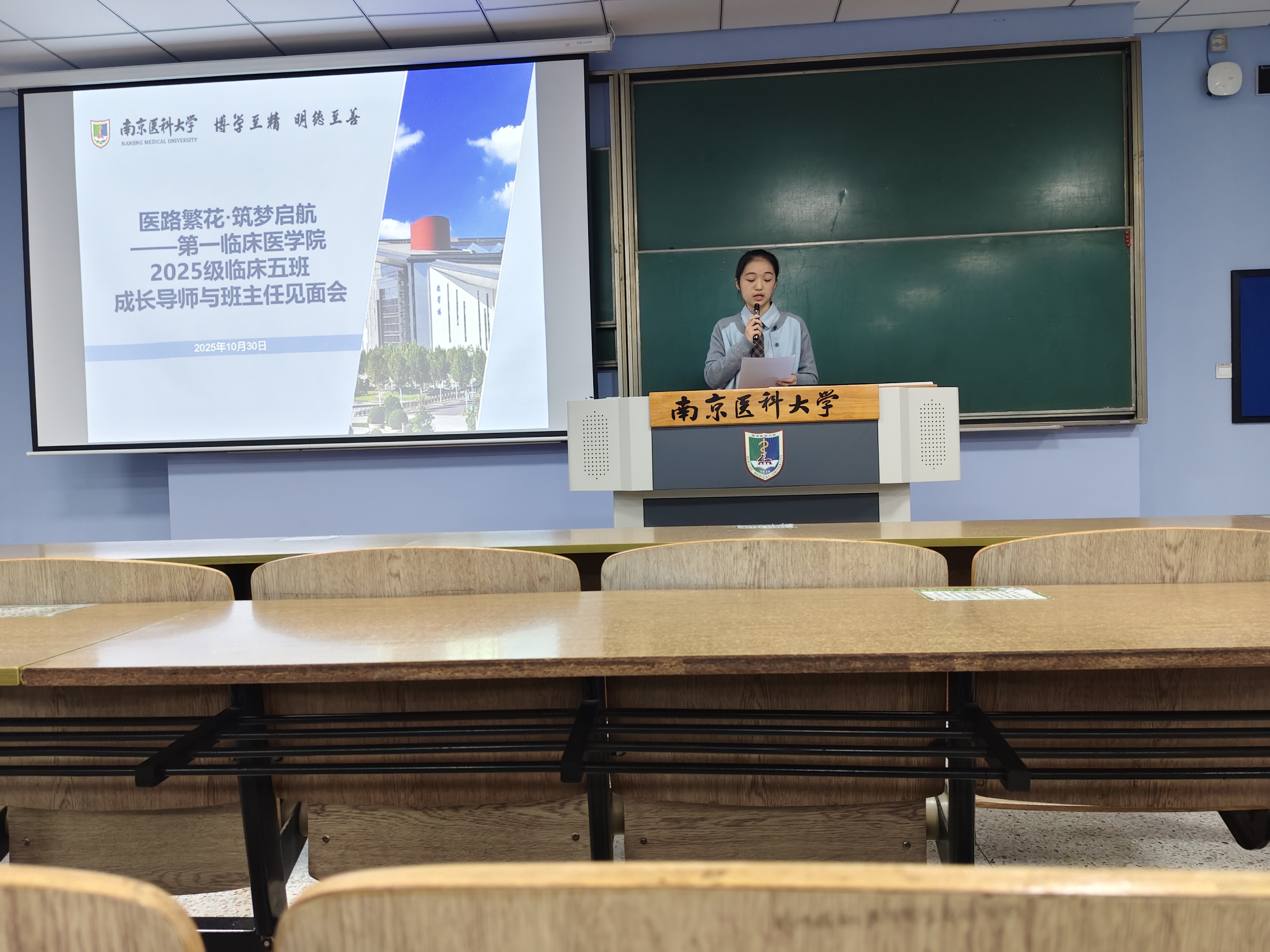 10月30日晚上,2025级临床医学五年制5班成长导师南京医科大学第一附属医院风湿免疫科主任医师王嫱老师与校友骨科医师王振老师为同学们带来了一场别开生面的成长导师见面会。参加此次会议的还有2025级临床医学五年制5班全体学生。