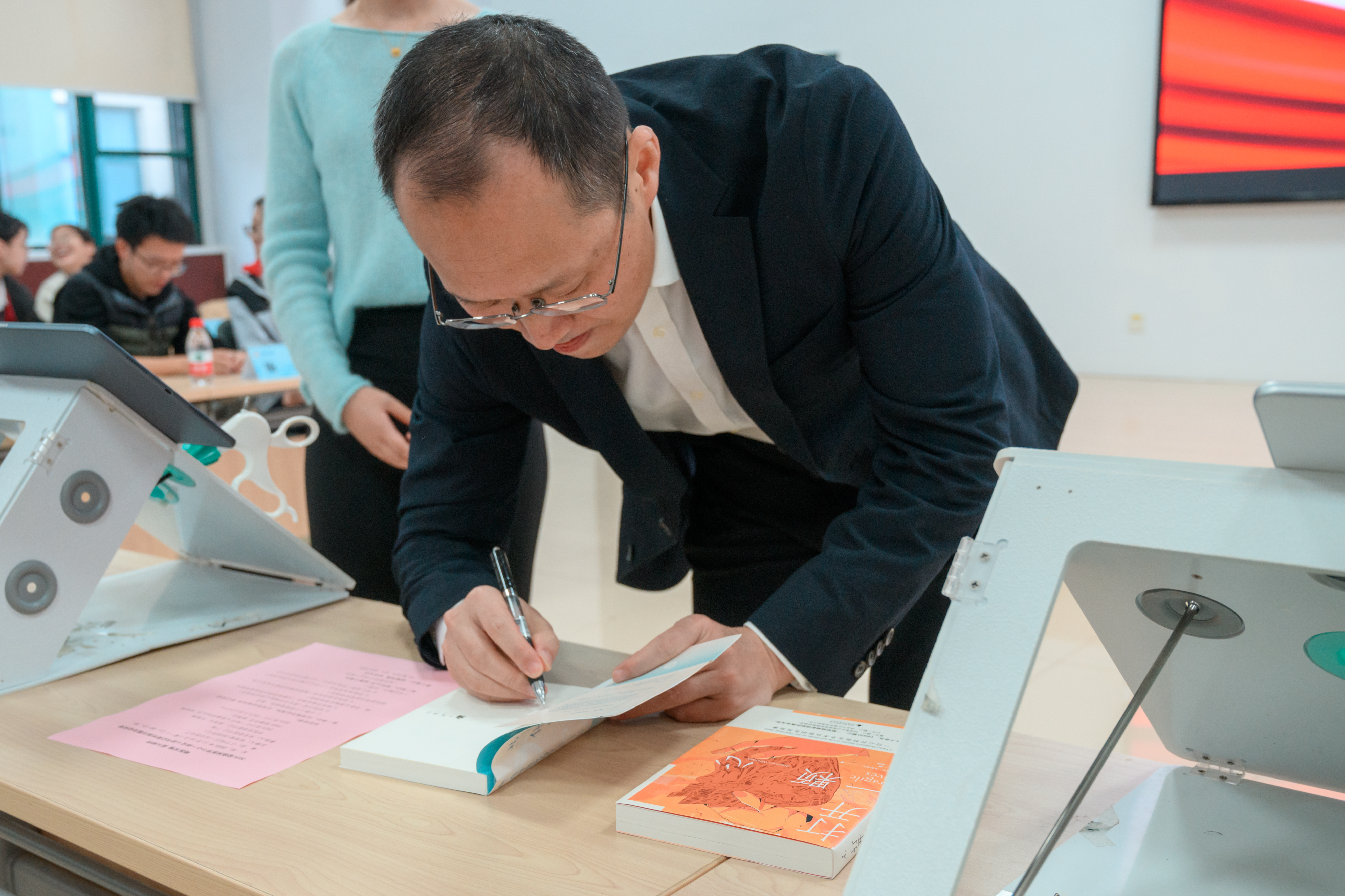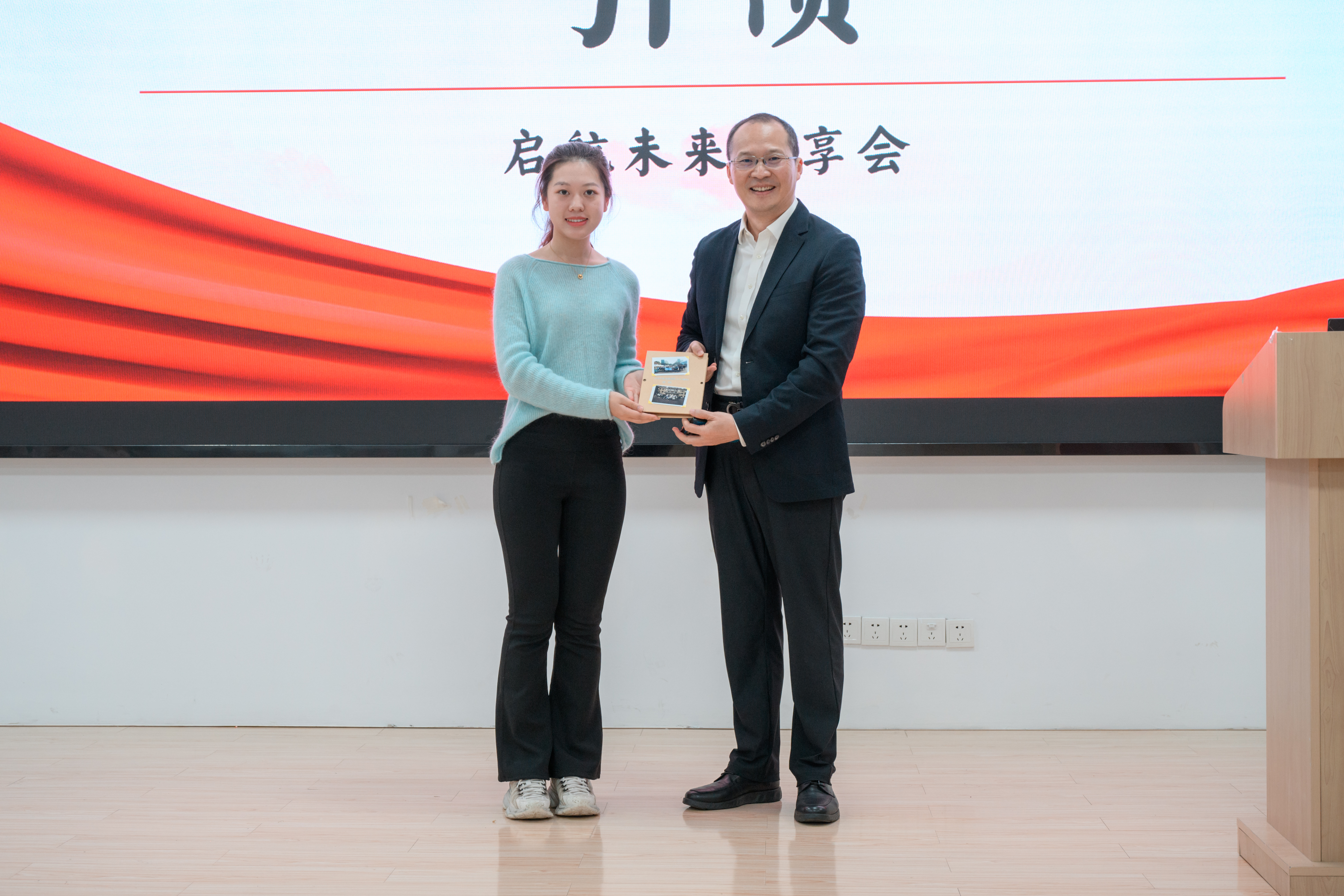 活动尾声,班级同学向丁书记赠送了全员手写制作的纪念册,承载着每个人的真挚感恩与青春承诺;书记也回赠亲笔签名书籍,勉励同学们不负韶华、奋发有为。全体师生于台前合影留念,为本次团日活动定格下珍贵瞬间。