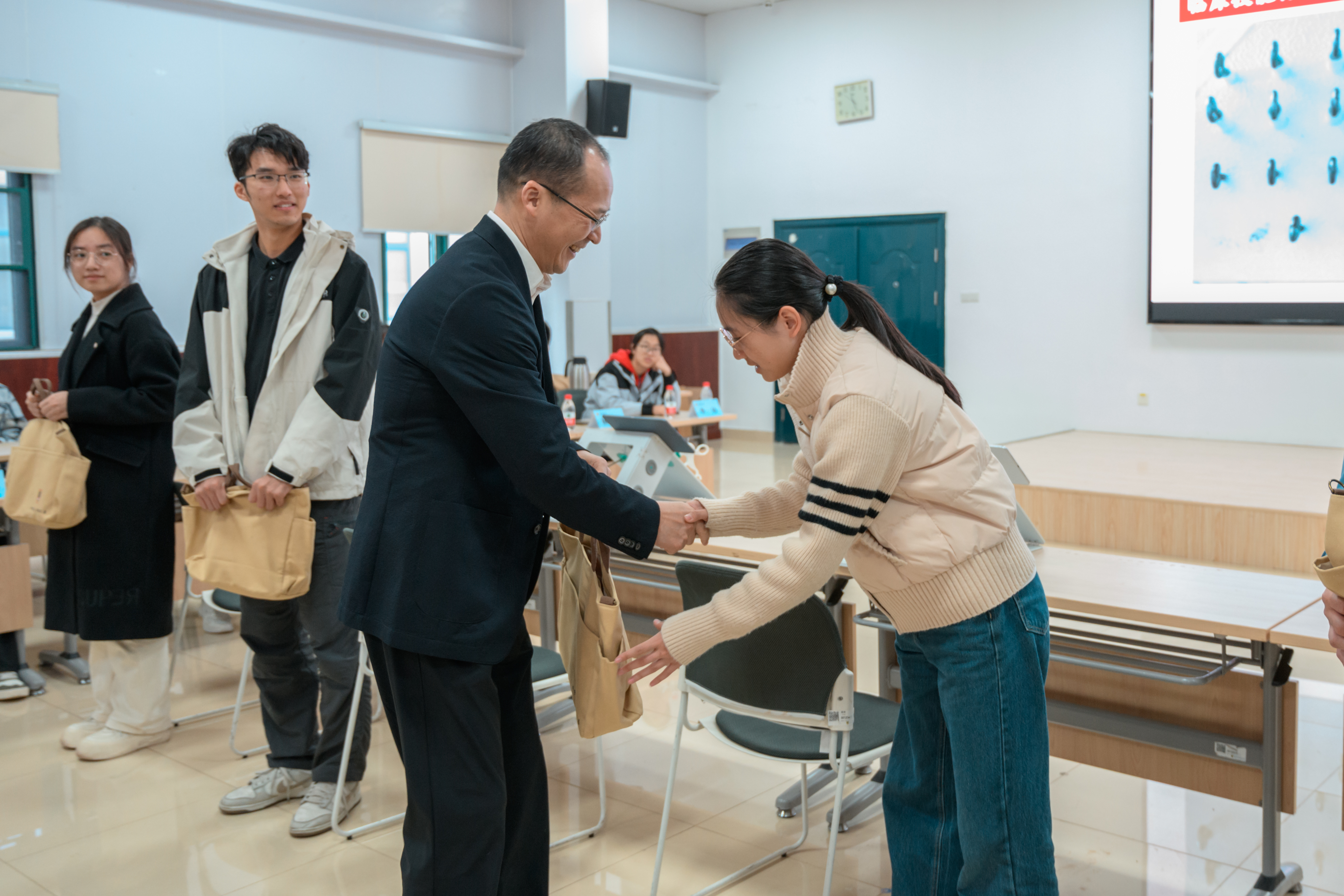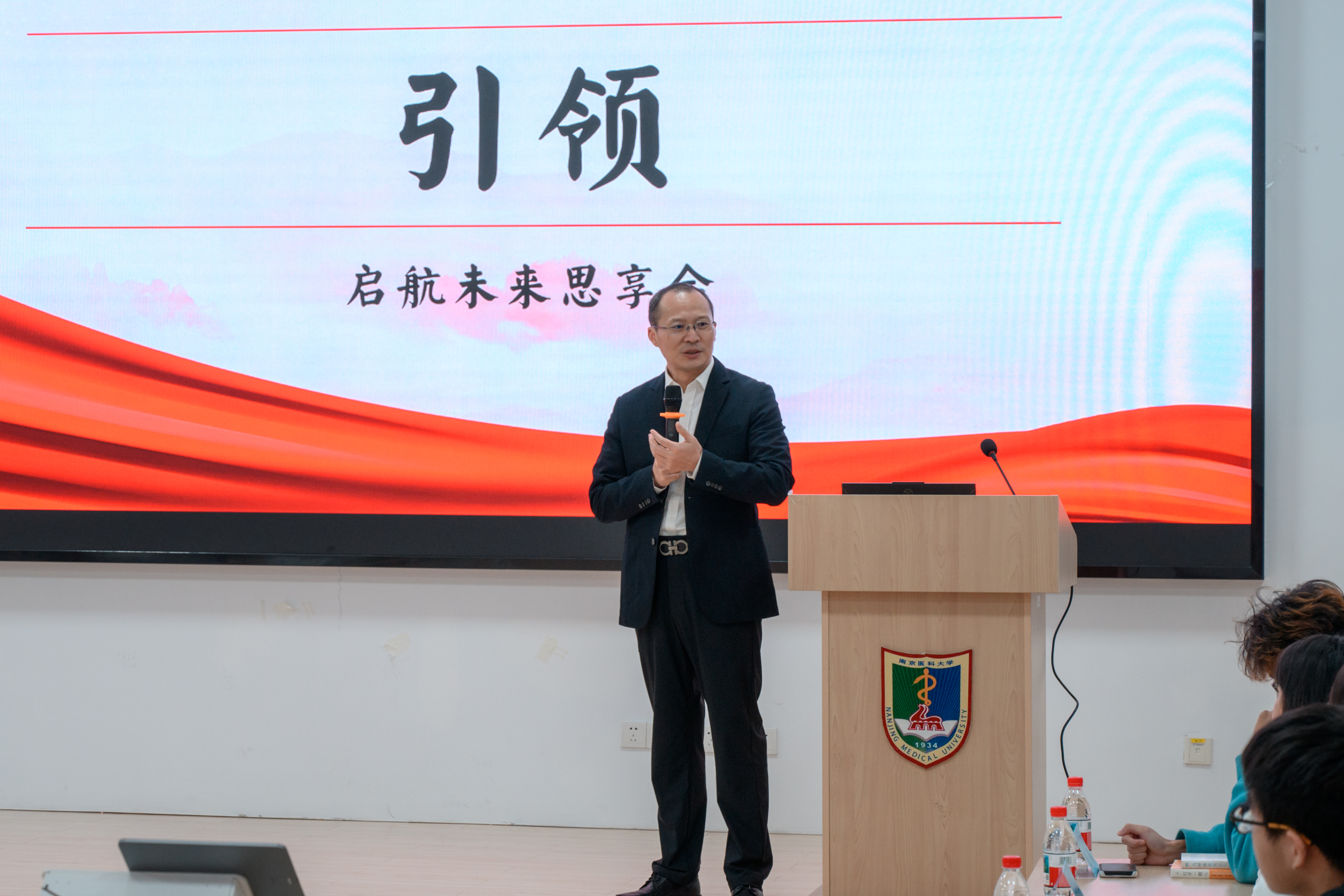 在“引领·启航未来思享会”环节,丁书记结合自身的求学、从医经历,以“不畏挫折”为核心,为同学们带来了一场生动的分享。他讲述了在艰苦条件下砥砺前行、愈挫愈勇的成长历程,勉励同学们须拥有直面困难、不畏挫折的勇气,并以此为基,锤炼精湛医术,涵养深厚医德,最终肩负起时代赋予的医学使命。在随后的互动中,同学们围绕科研入门、临床实践、素质培养等话题踊跃提问,丁书记一一予以细致解答,现场气氛温馨而热烈。
