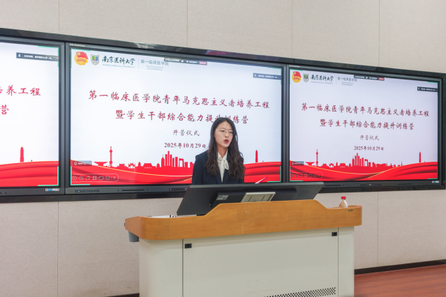 10月29日至11月9日,第一临床医学院举办2025年青年马克思主义者培养工程暨学生干部综合能力提升训练营。校党委宣传部副部长赵春华,马克思主义学院副教授任文峰,第一临床医学院党委副书记、副院长吴雅娜,学生工作办公室主任刘中领,辅导员代表参加本次训练营。283名本研学干代表及入党积极分子在江宁校区、五台校区及各见习、实习点线上线下同步参训。