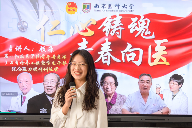 第五届江苏高校百校万名团干部思政技能大比武基层团支部书记赛道二等奖获得者顾淼同学展示了信仰公开课《仁心铸魂,青春向医》。她向全体学员讲解了“青春”与“医者”的双向奔赴,介绍了不同时代医者典范的感人事迹,阐释了医者仁心的精神传承,并号召全体学员践行医者使命,书写无愧于时代的青春篇章。