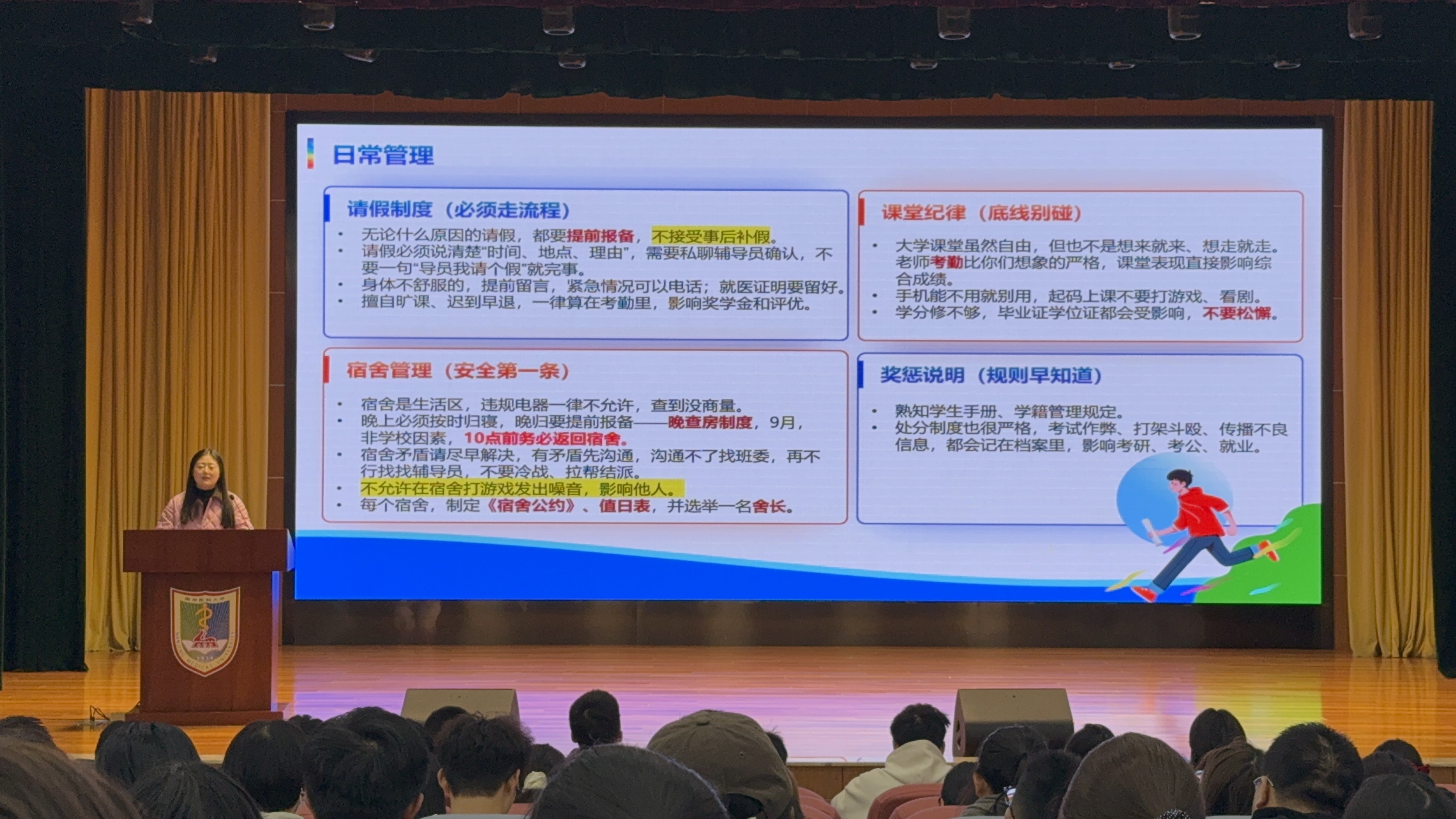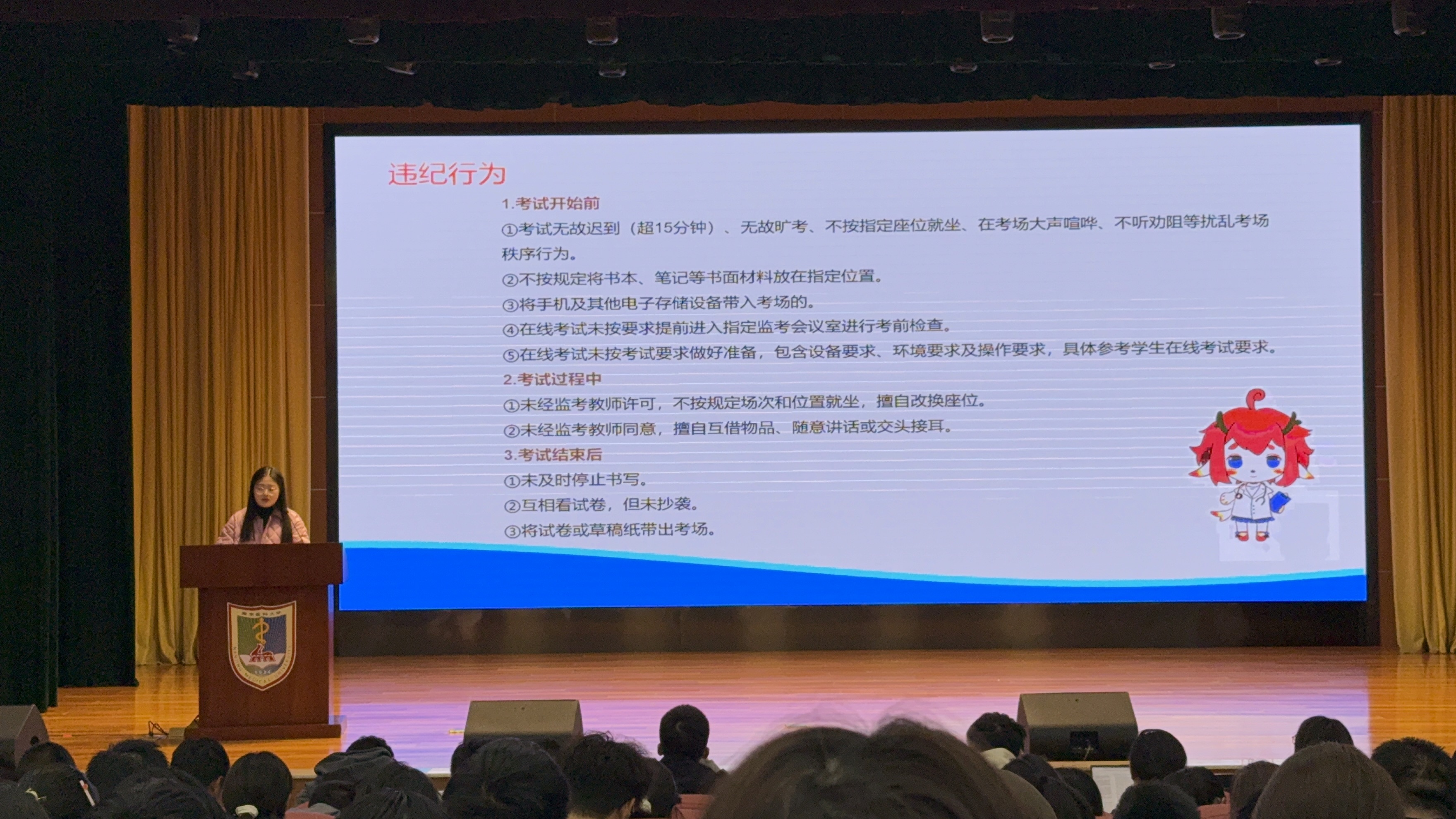 为了迎接即将到来的期中考试,督促同学们在学习和生活中积极上进,11月18日下午,第一临床医学院2025级全体同学在大学生活动中心参与了年级大会暨诚信考试教育。本次大会由2025级全体辅导员主持召开。