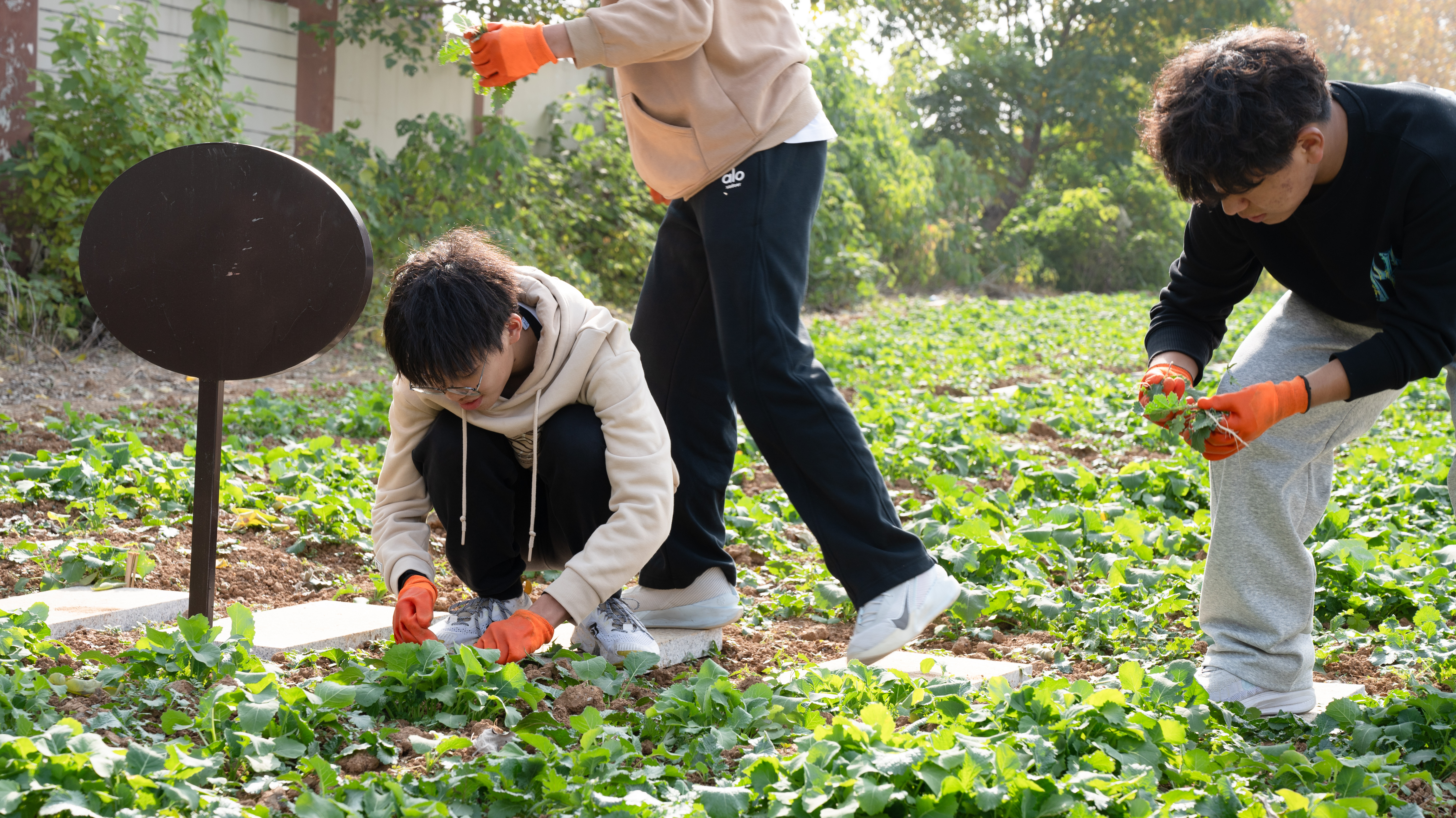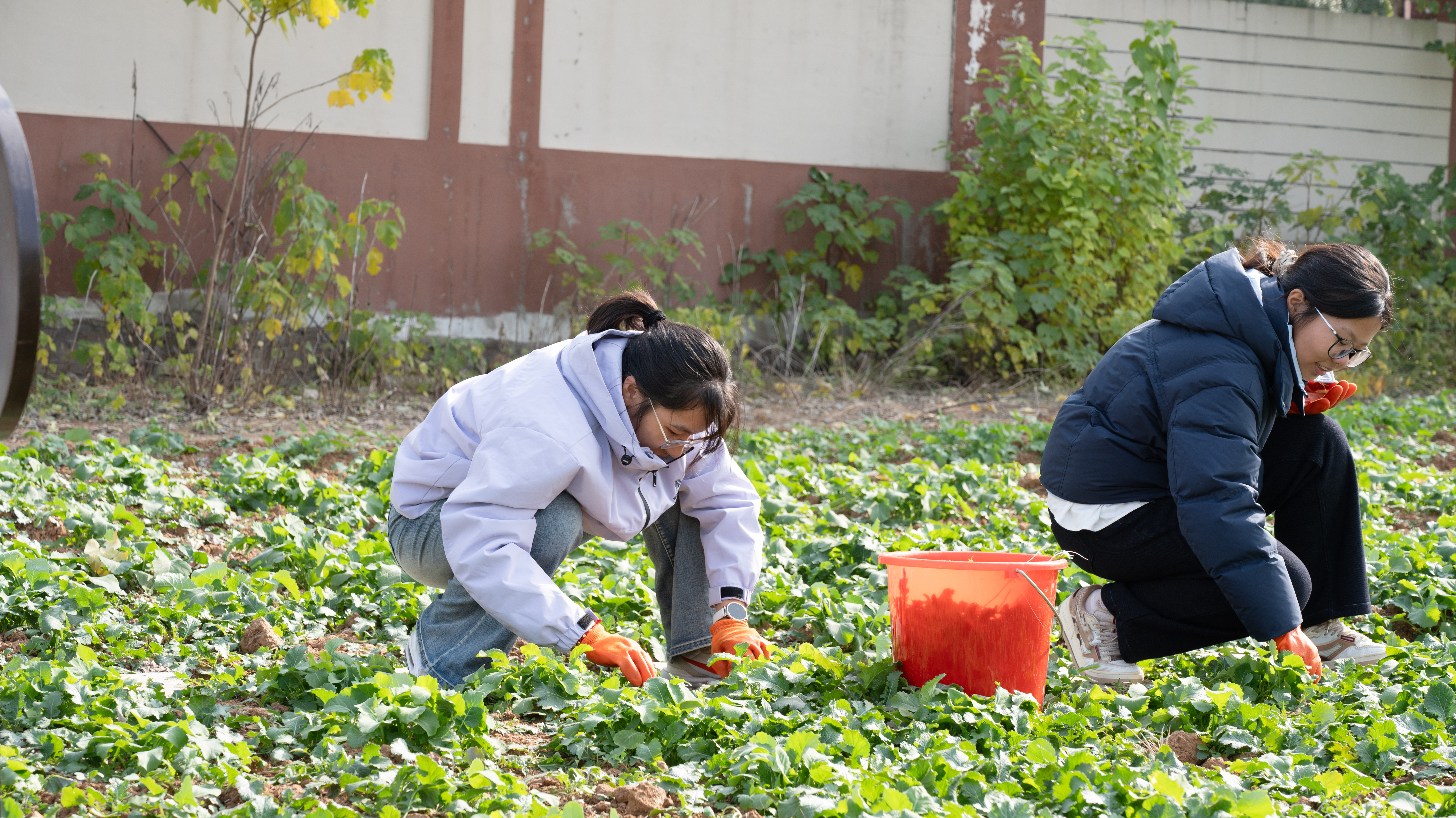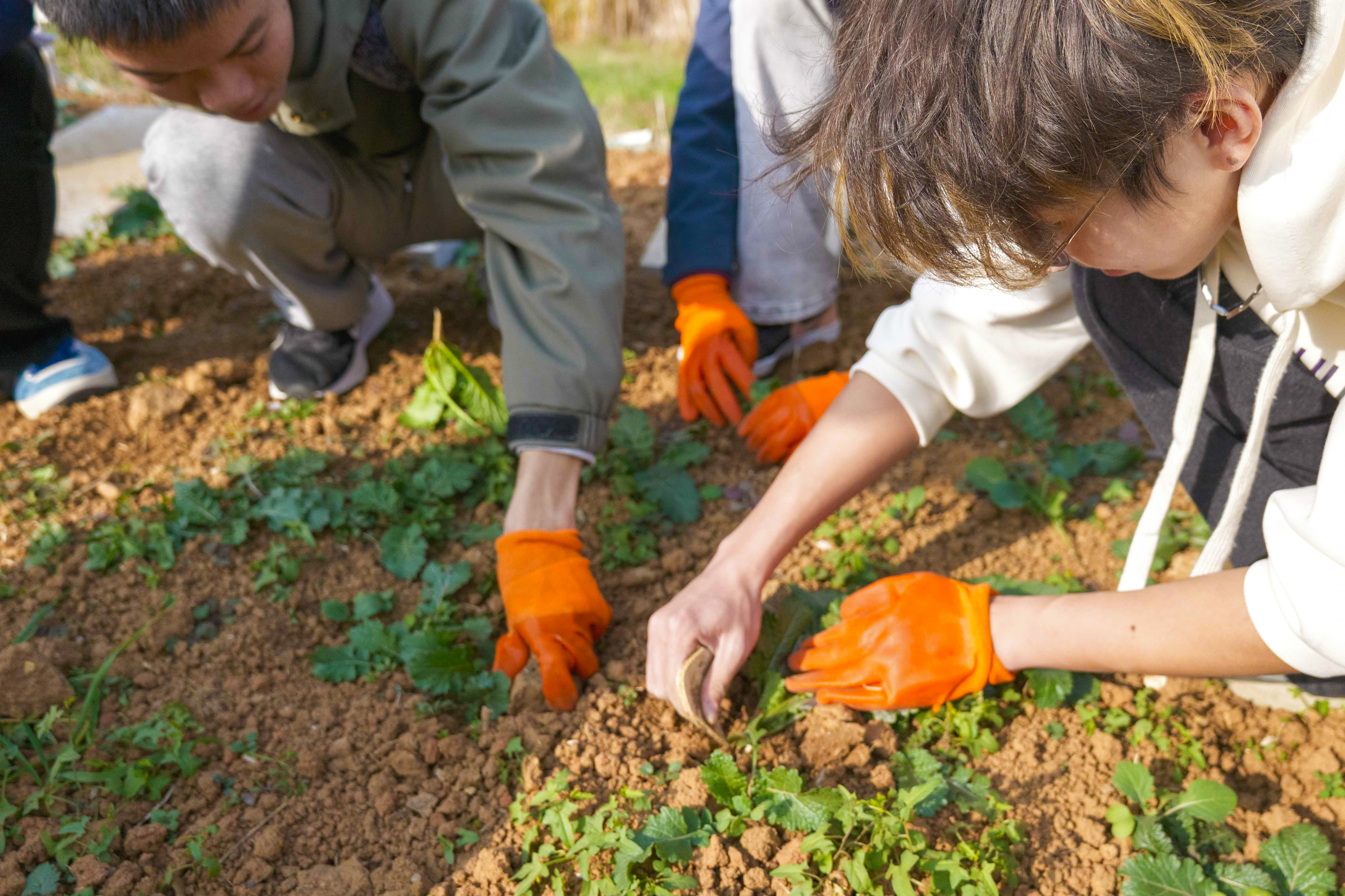 沾满细碎泥土的手套、堆着杂菜的红桶,见证着同学们的专注与投入。活动尾声,55名参与者围聚在绿意盎然的菜田间合影留念,笑容里满是劳作后的充实与真切的喜悦。
