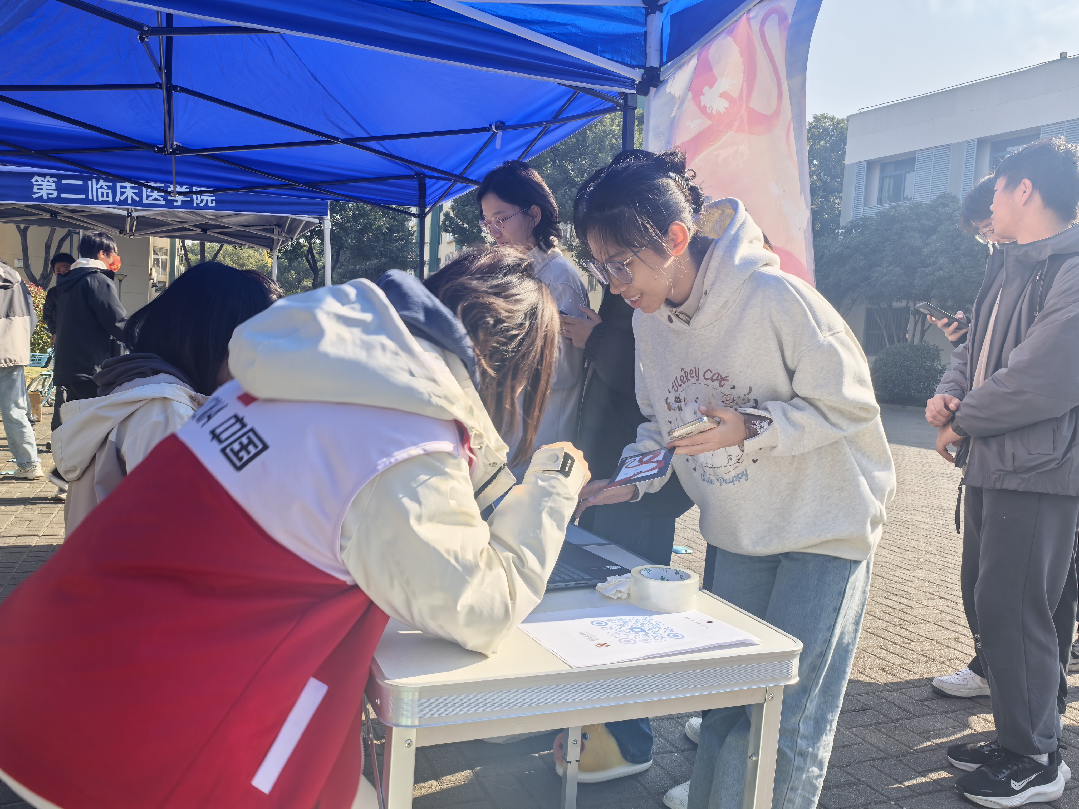 活跃在活动现场的志愿者们身着红马甲,热情服务,展现了医学生的担当。他们在实践中践行“健康所系,性命相托”的誓言,将医学知识与人文关怀相结合。