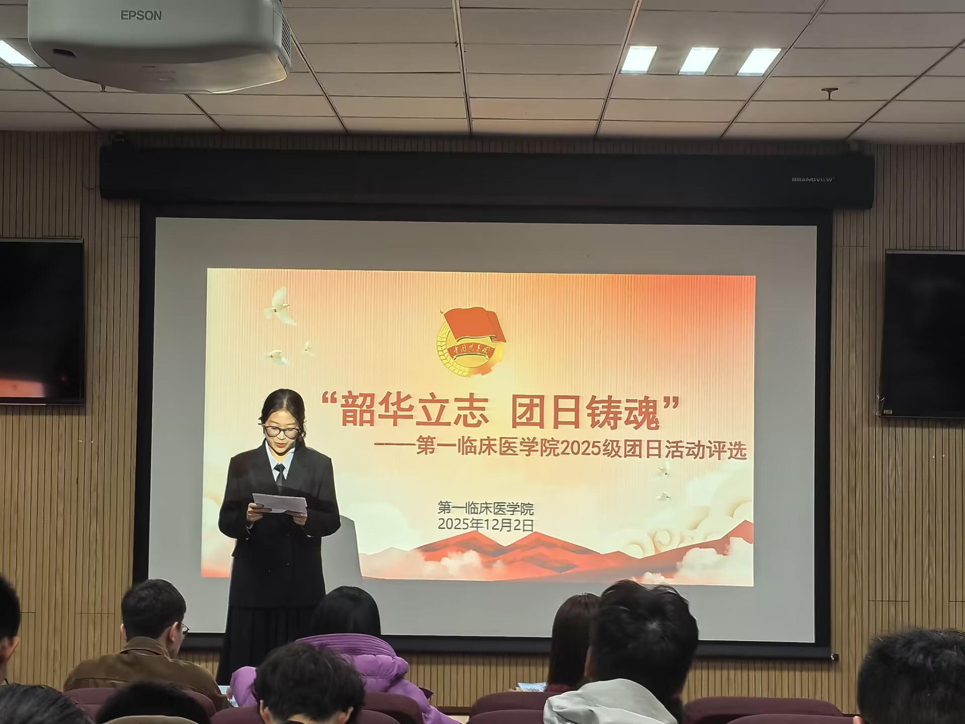 为深化青年思想引领,筑牢理想信念之基,第一临床医学院“韶华立志,团日铸魂”精品团日评选活动于12月2日举行。各班以青春之名践初心,用多样形式演绎团日风采,尽显医学生的责任与担当。本次参会嘉宾有学院辅导员张婷婷老师,玉苏甫·台瓦库力老师,赵雅婧老师。