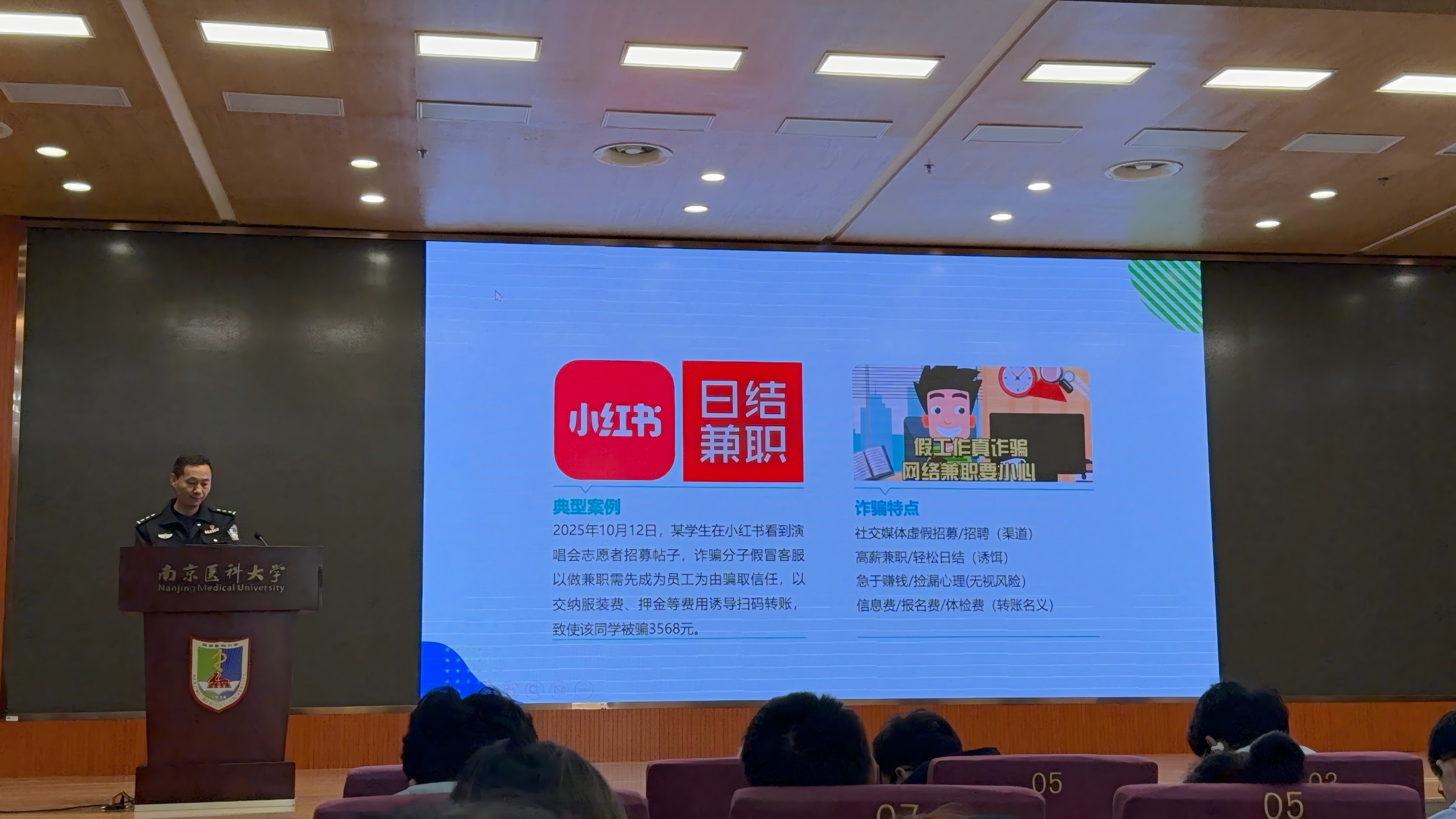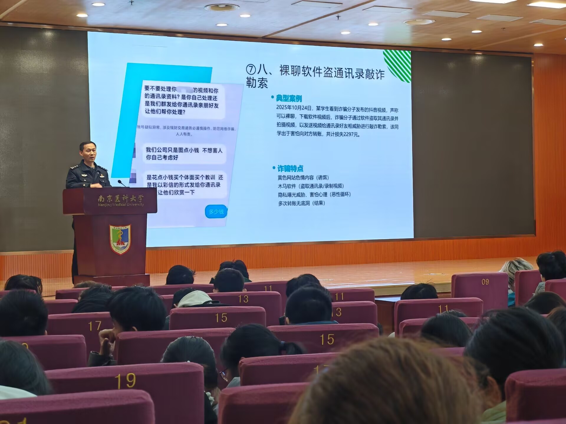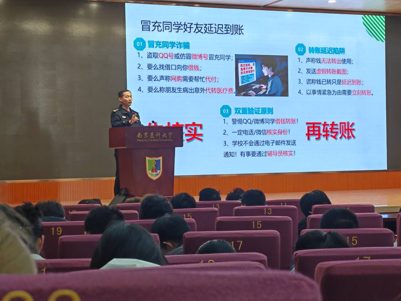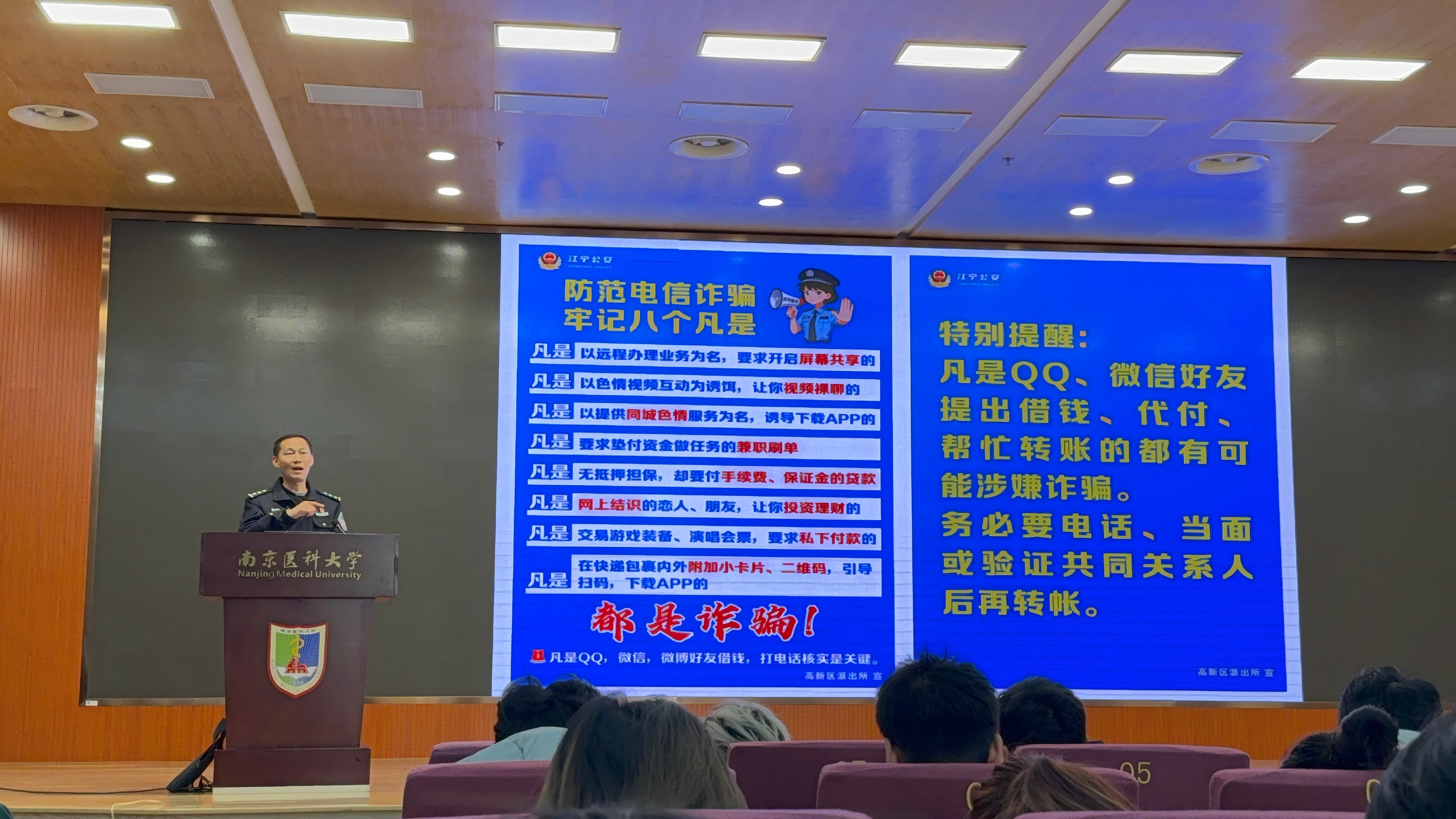此次宣讲活动以案释法、以警示人,内容贴近学生生活、针对性强,让在场同学直观认识到诈骗的隐蔽性与危害性,有效提升了自我保护意识和识骗防骗能力。下一步,南京医科大学将持续把反诈宣传教育融入校园日常,通过多形式、全覆盖的宣传活动,普及反诈知识,强化安全防范,全力守护师生财产安全,为建设更高水平的平安南医提供坚实保障。