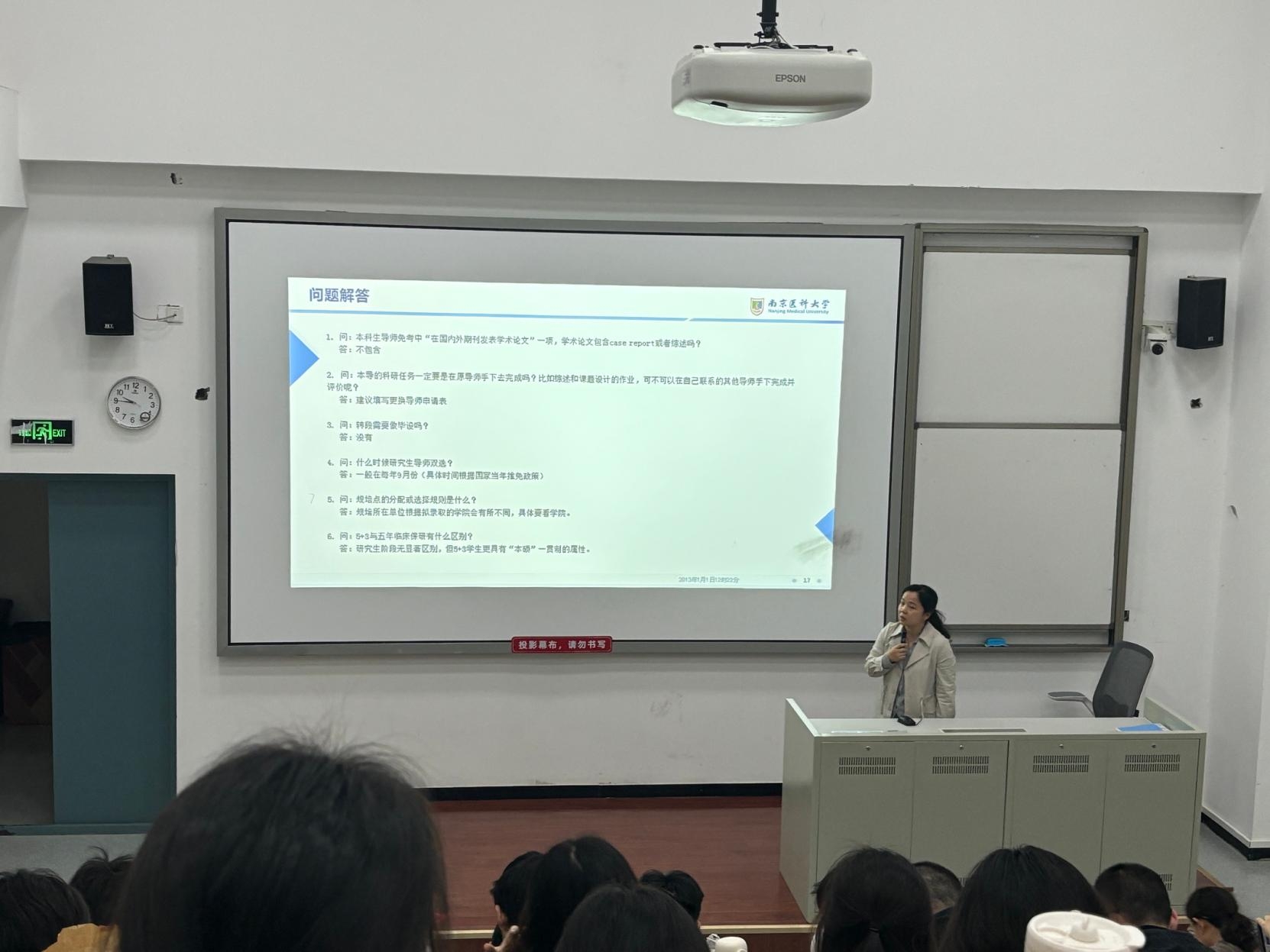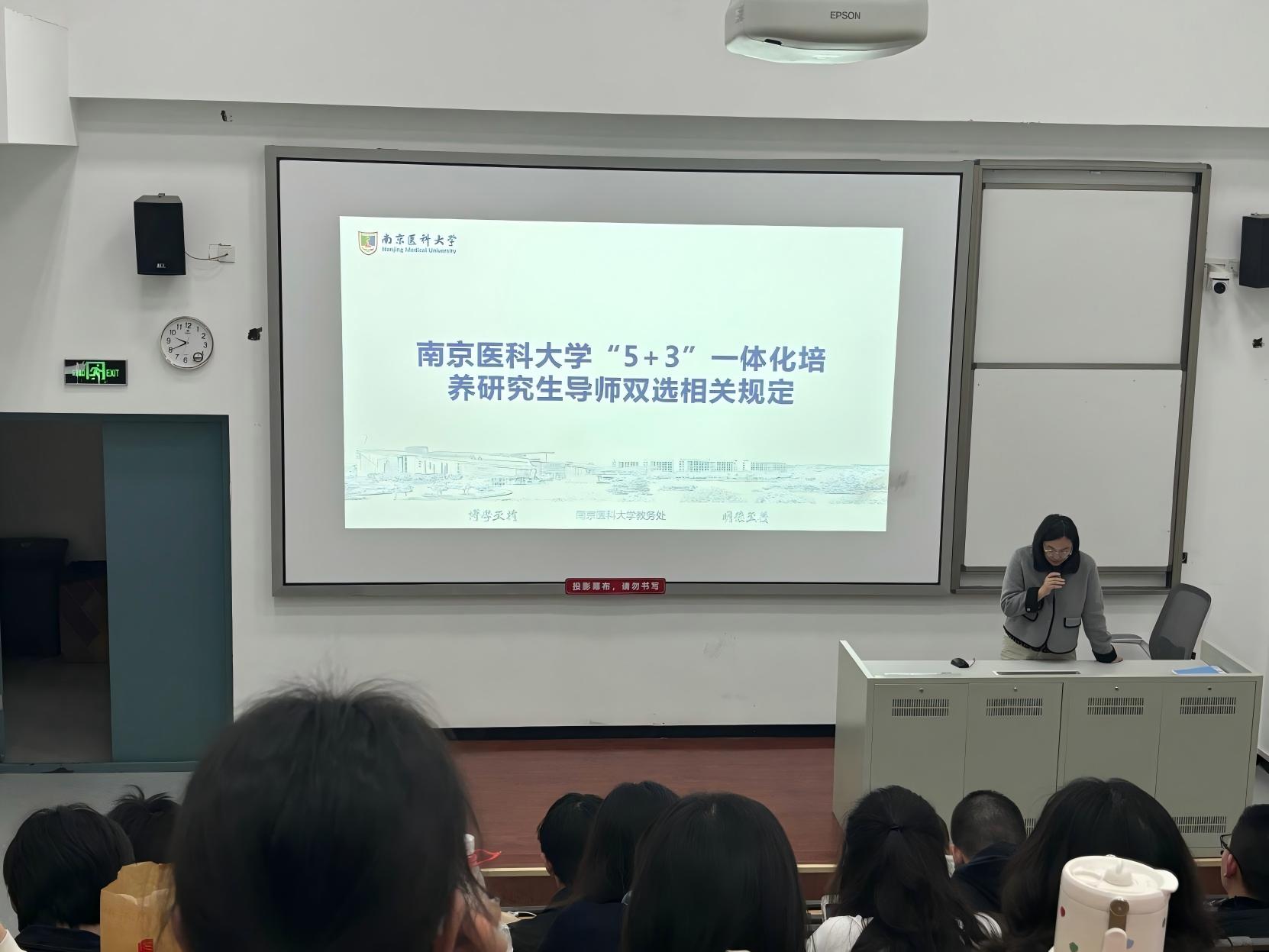讲座伊始,主讲老师简要介绍了举办此次讲座的背景与目的。她指出,5+3一体化培养模式对学生的学业连续性、科研素养及临床能力提出了更高要求,及时掌握学籍政策、明确各阶段考核标准,是顺利完成本硕衔接的重要保障。