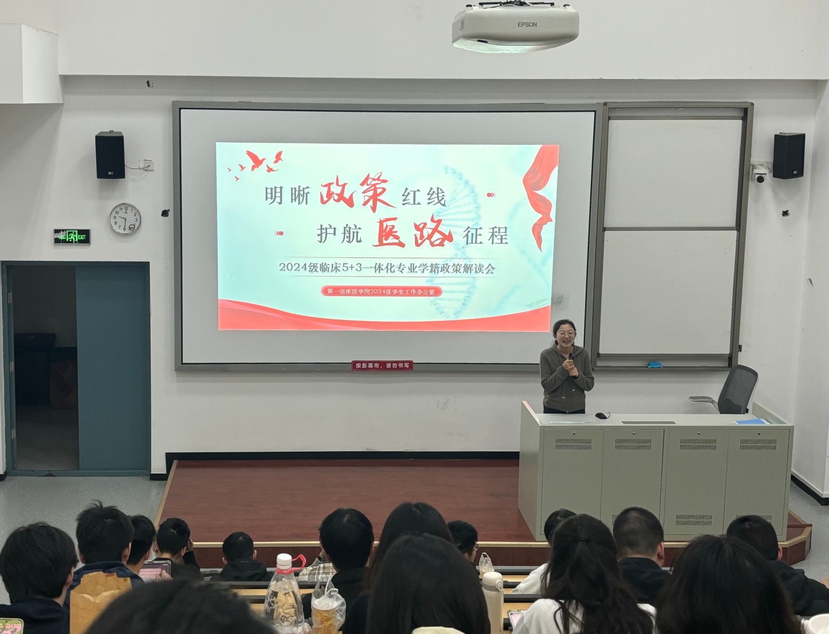 为帮助临床医学5+3专业学生准确理解学籍管理政策,科学规划学业发展,4月24日,年级学工办在学海楼阶梯教室举办学籍政策解读专题讲座。本次讲座由拔尖创新人才培养办公室沈炜炜老师、徐霄霏老师主讲,24级辅导员陈琪波老师、刘亚老师和年级临床医学5+3专业全体同学参加。