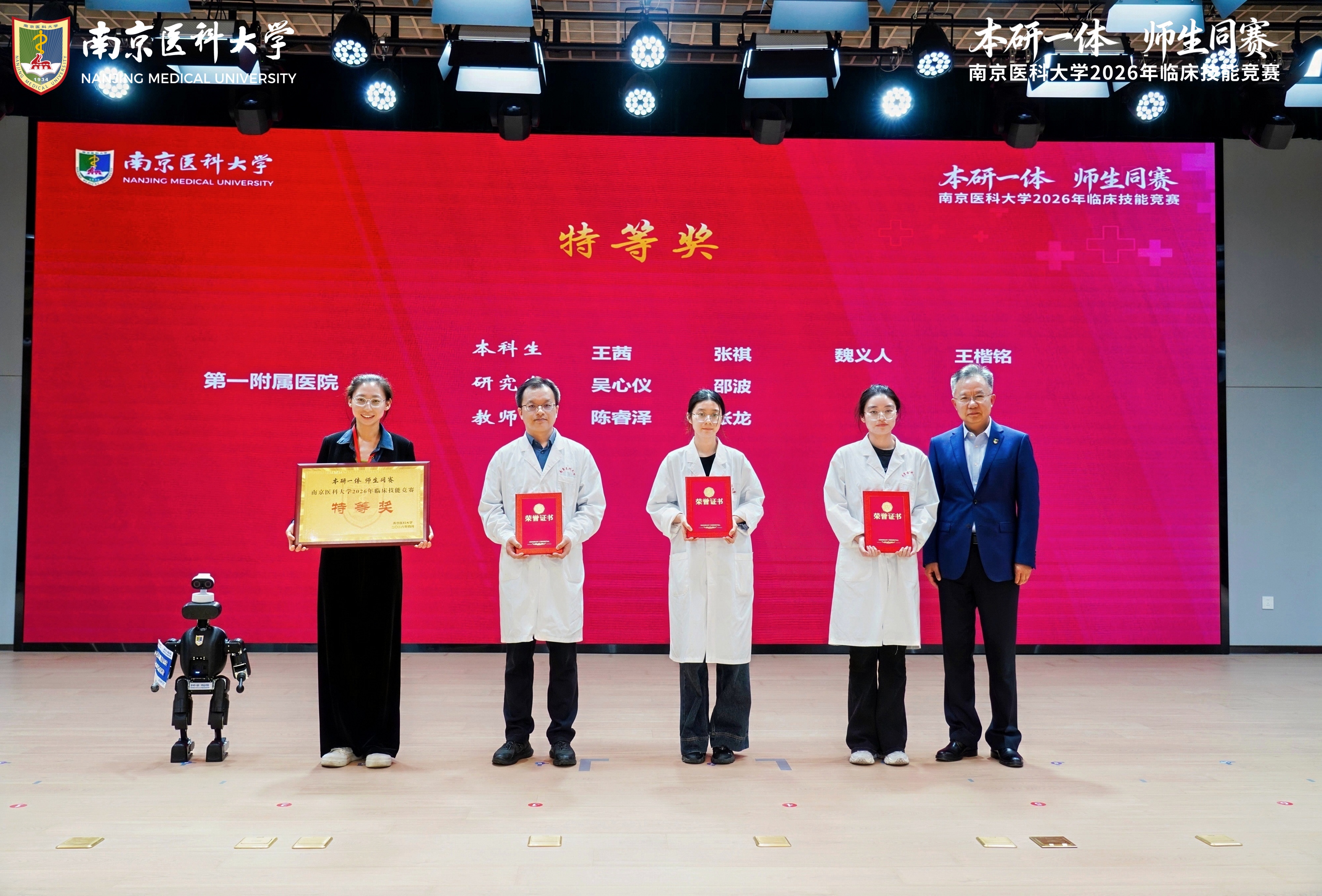 4月25日,在“本研一体,师生同赛”南京医科大学2026年临床技能竞赛中,第一附属医院师生代表队凭借扎实的临床操作、出色的团队协作以及卓越的临床带教能力,荣获特等奖,比赛最终得分排列全校第一。